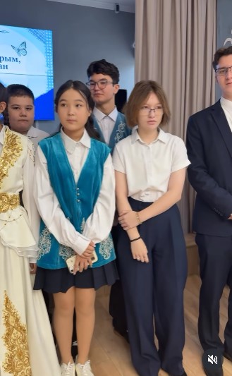 В финале ребята с волнением посмотрели видеоролик от Шпановой Екатерины, выпускницы 2025 года. Находясь на учебе в Китае, она не осталась в стороне от праздника и прислала видео с чтением собственного стихотворения «Моя Родина — Казахстан».