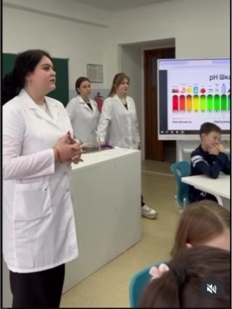 Студентки 3 курса педагогического института Быченко Ангелина и Душенко Алёна реализуют пропедевтический курс «Валеологическая химия» для учащихся 6 «Д» класса школы №19 г. Костанай.