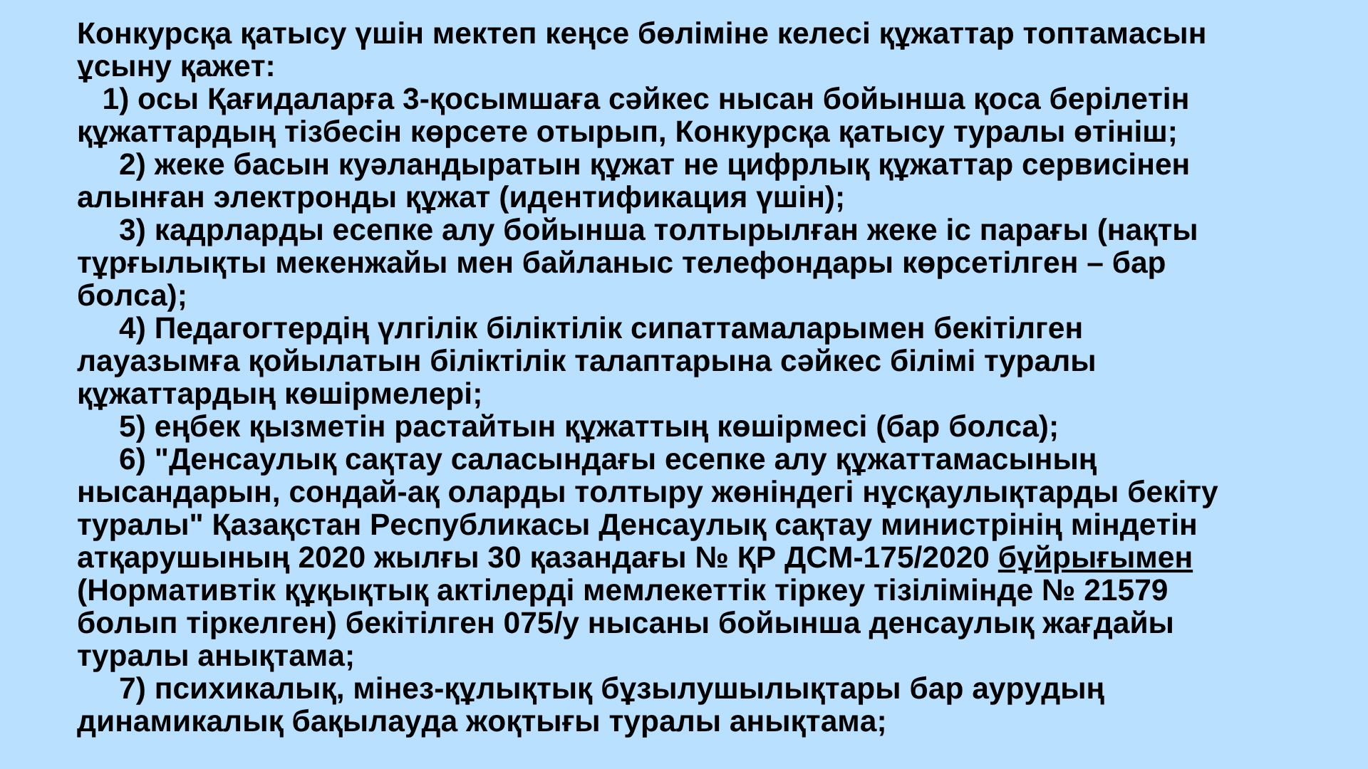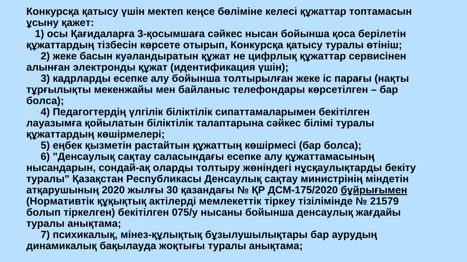 Конкурстық комиссияға құжаттар топтамасы 2025 жылғы шілде